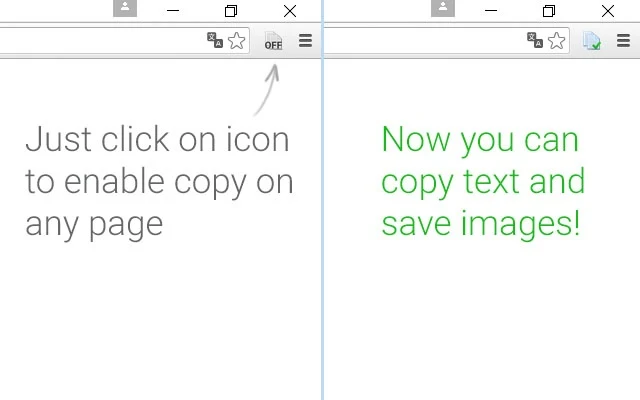 كل ما عليك فعله هو تحميل و تثبيت إضافة Allow Copy لمتصفح جوجل كروم . بعد تثبيت الإضافة يمكنك التوجه إلى أي صفحة تمنع النسخ ثم تضغط على الأيقونة الخاصة بالإضافة و سوف تتحول إلى علامة الصح باللون الأخضر و هذا يعنى أنه أصبح بإمكانك النسخ من هذه الصفحة .